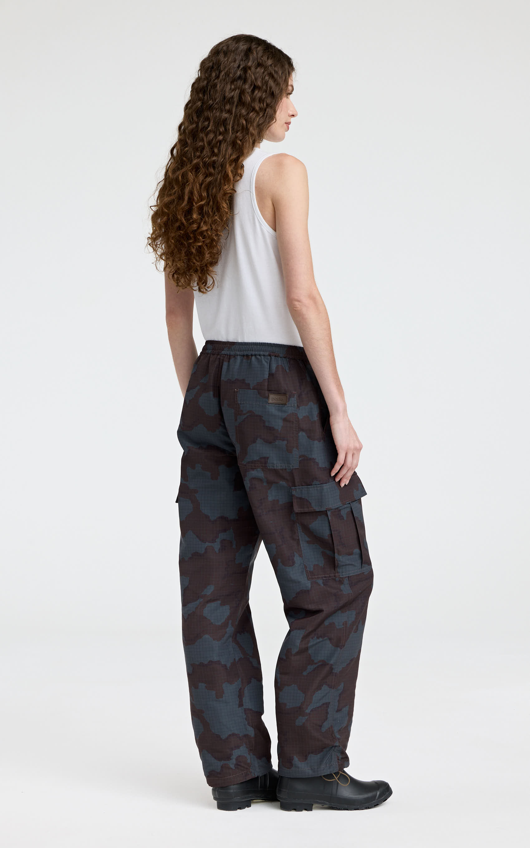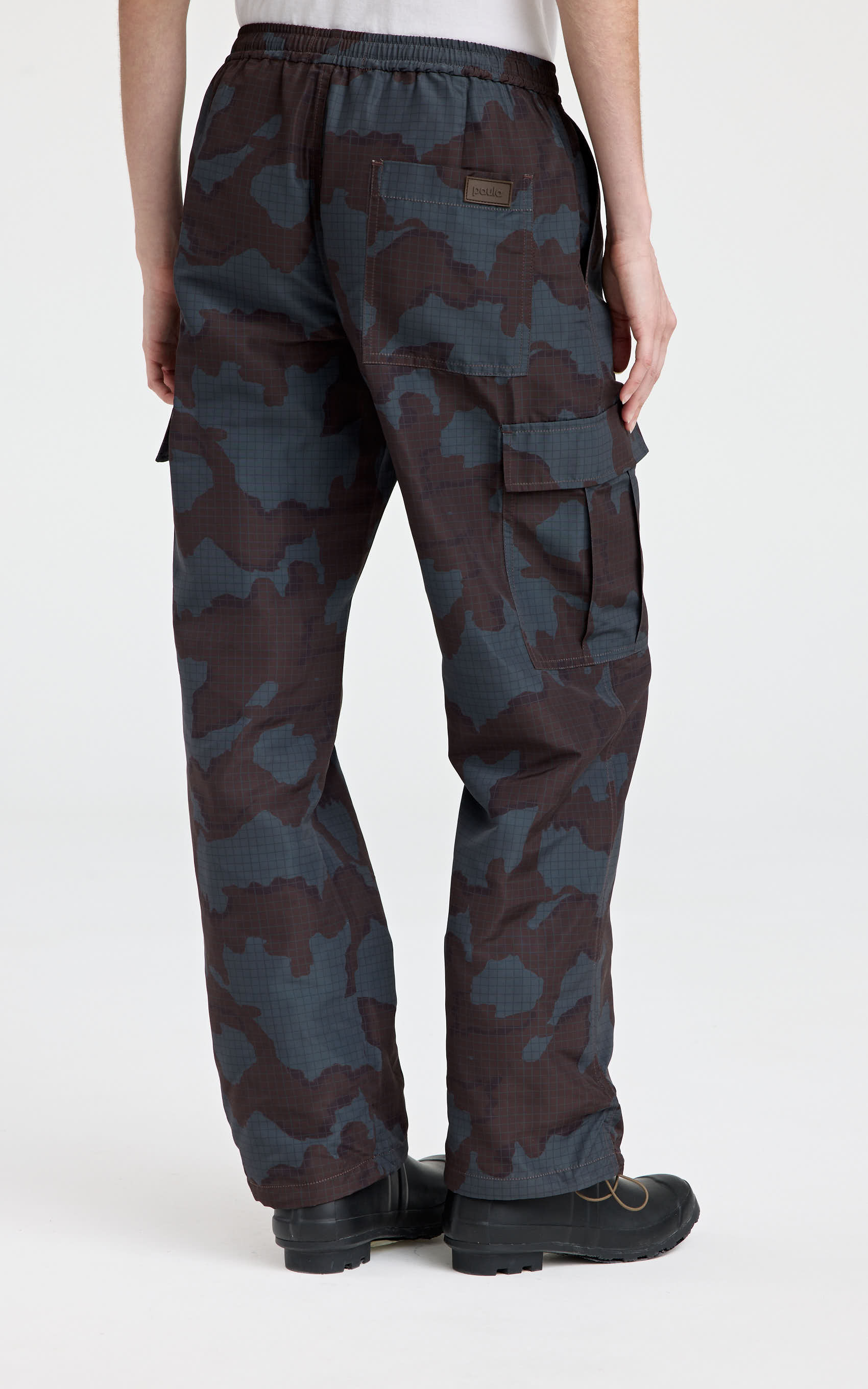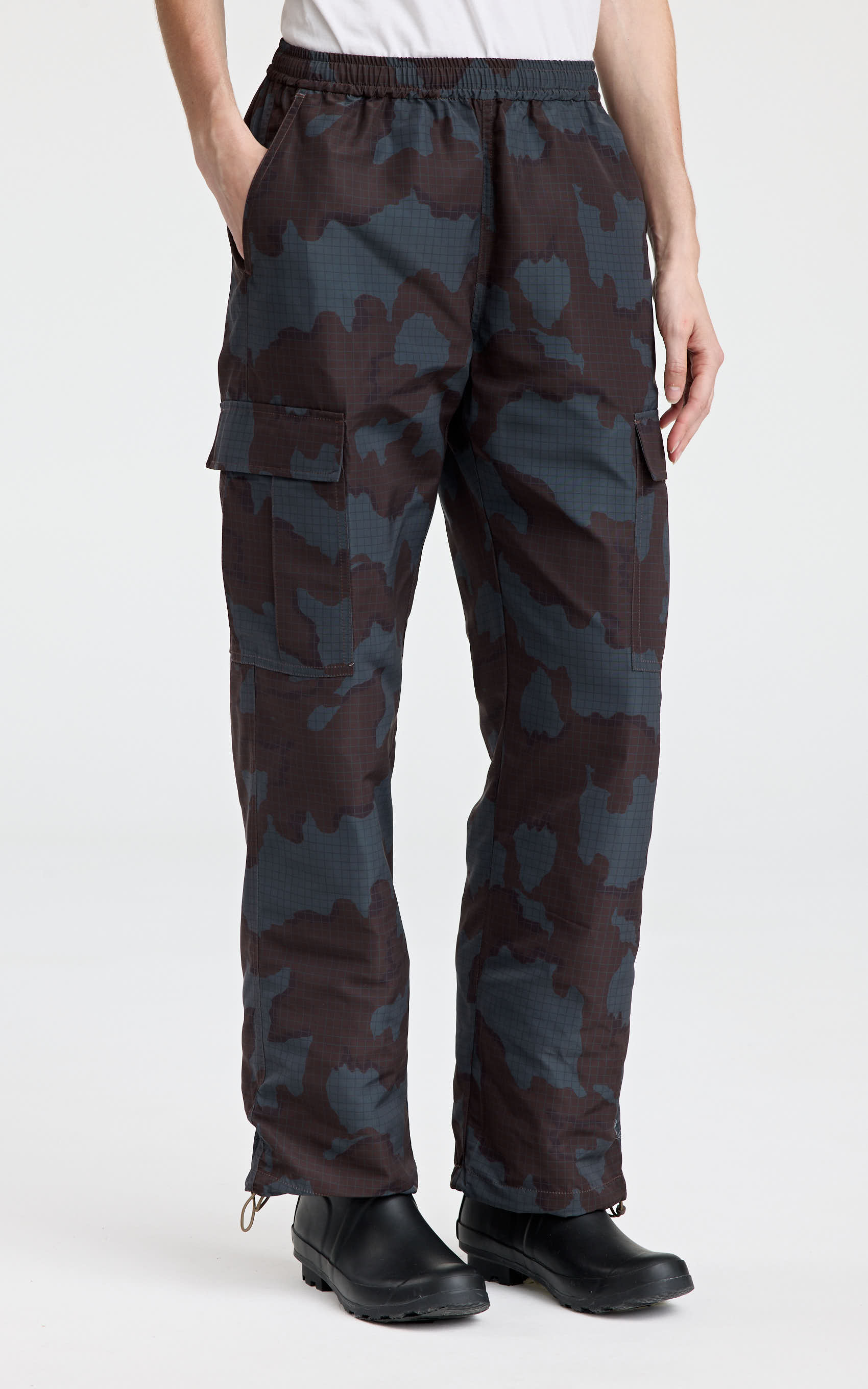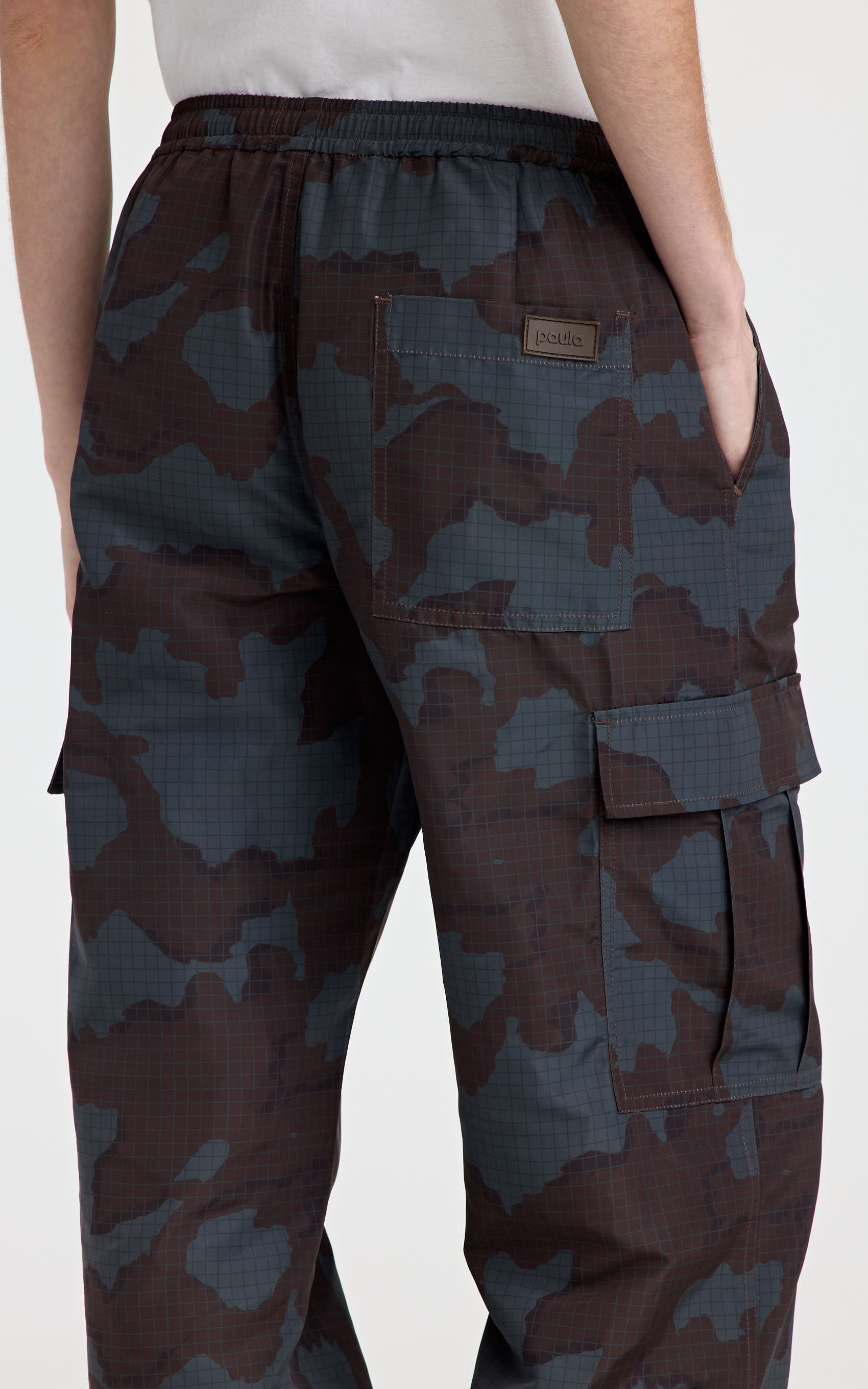 Pantalón de textil estampado repelente al agua. Detalle de bolsillos diagonales en delantero y bolsillos plaqué con tapa en laterales. Cintura con elástico embutido y cordones para ajustar. Lleva corona estampada. PRODUCTO FABRICADO EN ORIENTE.
